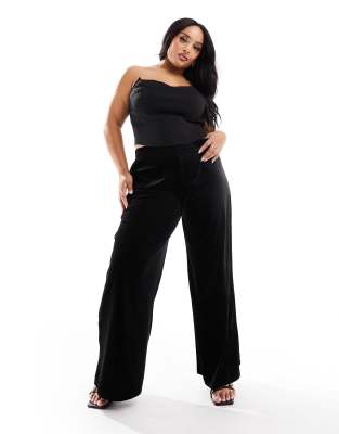 Yours - Pantaloni in velluto nero con fondo ampio