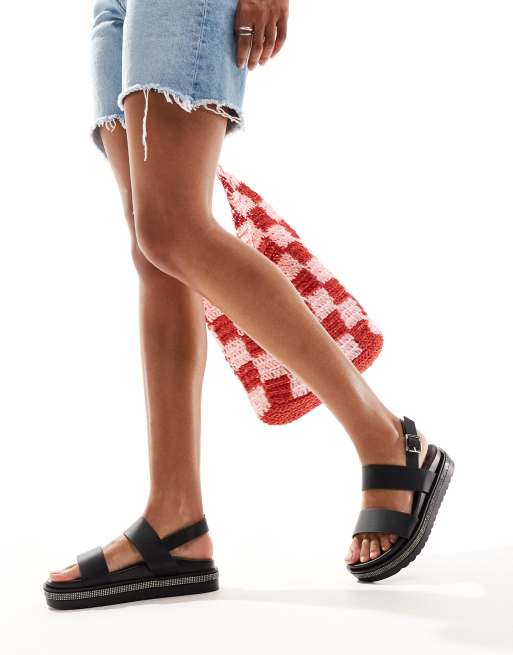 Yours - Sandali neri con strass e suola spessa