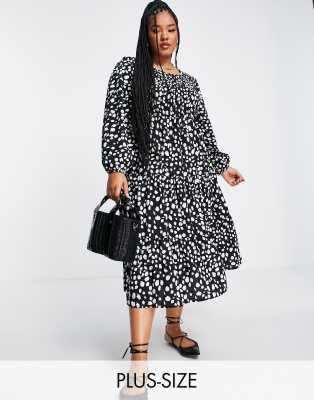 Yours - Vestito midi nero con maniche a palloncino arricciato in stampa animalier