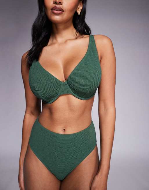 Ivory Rose Lingerie Fuller bust unpadded underwired scoop bikini top in scrunch in khaki
