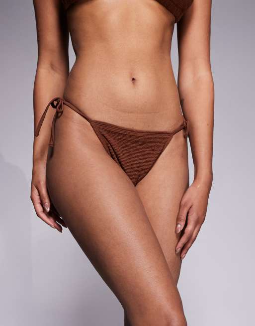 Ivory Rose Lingerie Tie side bikini bottom in scrunch in brown
