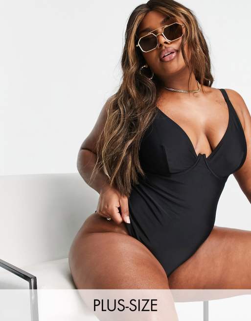 Ivory Rose Curve exaggerated wire swimsuit in black