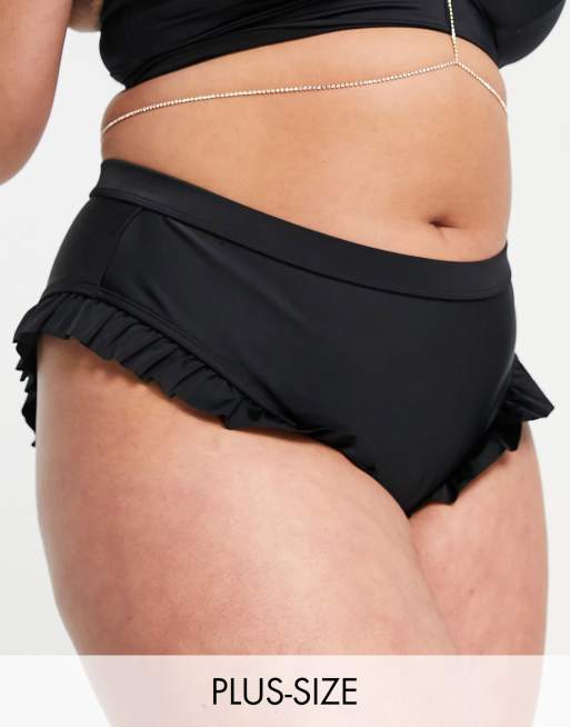 Ivory Rose Curve Exclusive high waist frill bikini bottom in black