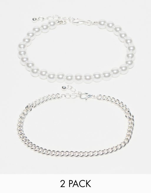Jack & Jones 2 pack silver plated chain and pearl bracelet