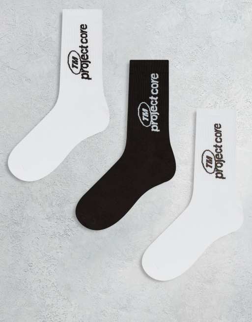 Jack & Jones 3 pack sport socks in brown white cream with side text