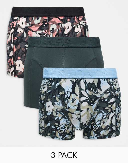 Jack & Jones 3 pack trunks in flower print in multi