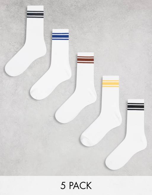 Jack & Jones 5 pack sports socks with bright stripe in white