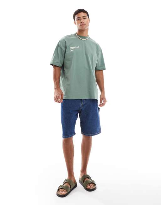 Jack & Jones baggy fit denim carpenter short in mid blue wash
