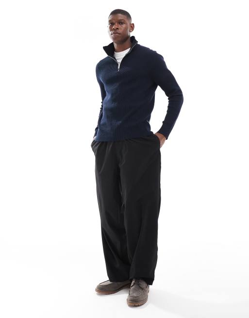 Jack & Jones chunky rib knitted half zip jumper in navy