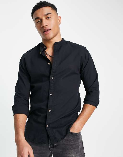Jack & Jones Essentials grandad collar shirt in black