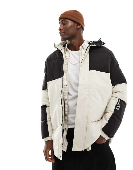 Jack & Jones Essentials heavy puffer parka jacket in off white and black