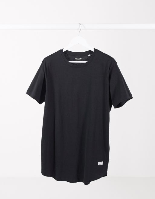 Jack & Jones Essentials longline t-shirt with curve hem in black
