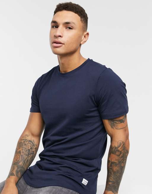 Jack & Jones Essentials longline t-shirt with curve hem in navy