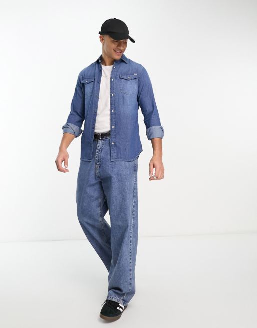 Jack & Jones Essentials slim fit denim shirt in mid wash