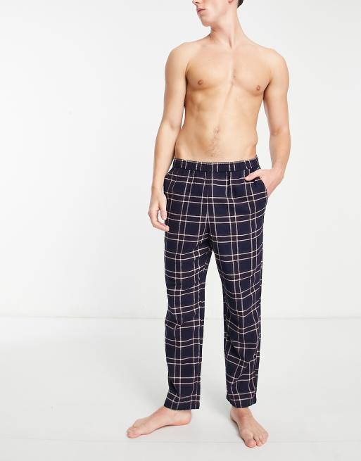 Jack & Jones flannel check pyjama bottom with in navy & burgandy check