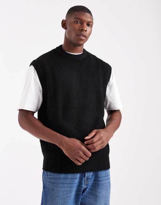 Jack & Jones fluffy knitted vest in black