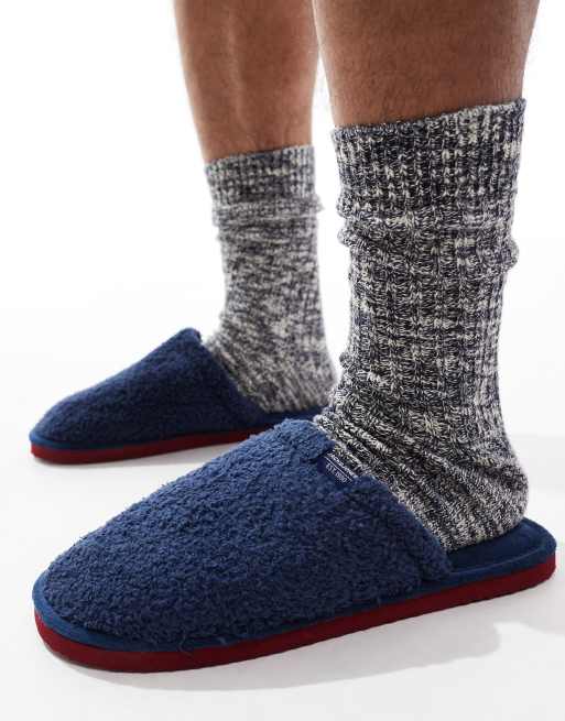 Jack & Jones fluffy slip on slipper in navy