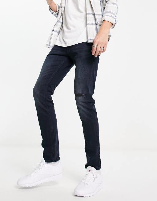 Jack & Jones Intelligence Glenn slim fit super stretch jeans with rips in blue black