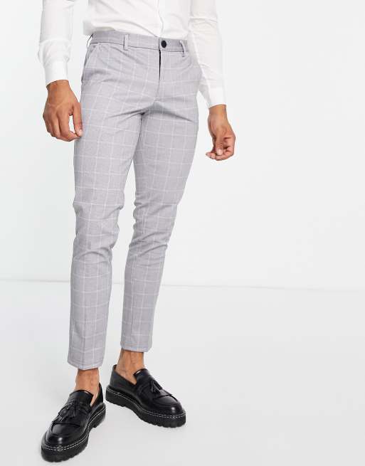 Jack & Jones Intelligence marco slim fit check smart trouser in grey