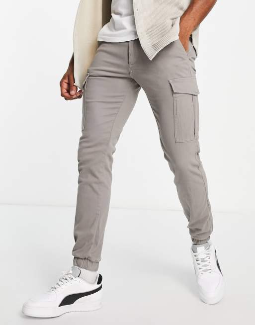 Jack & Jones Intelligence slim fit cargo trousers in light grey