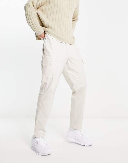 Jack & Jones Intelligence wide leg tapered drawstring cargo trouser in beige