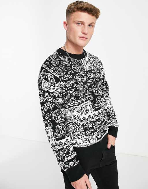 Jack & Jones jacquard knit jumper in monochrome paisley pattern