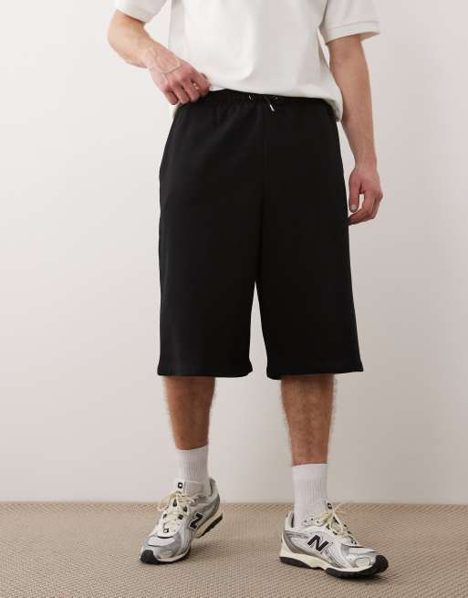 Jack & Jones longline sweat shorts in black