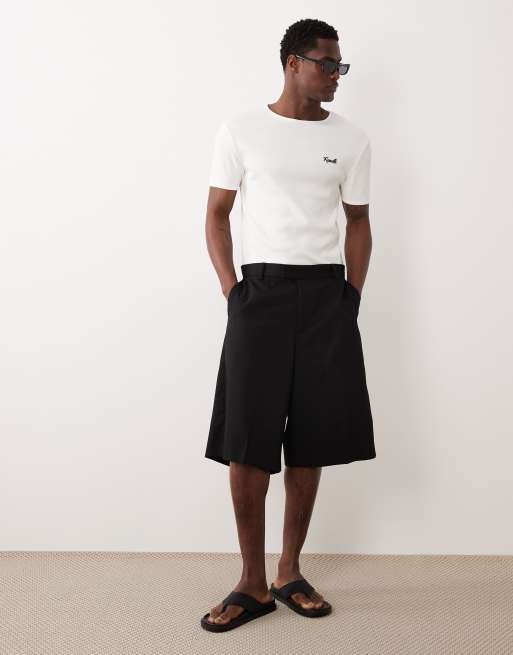 Jack & Jones longline tailored shorts in black