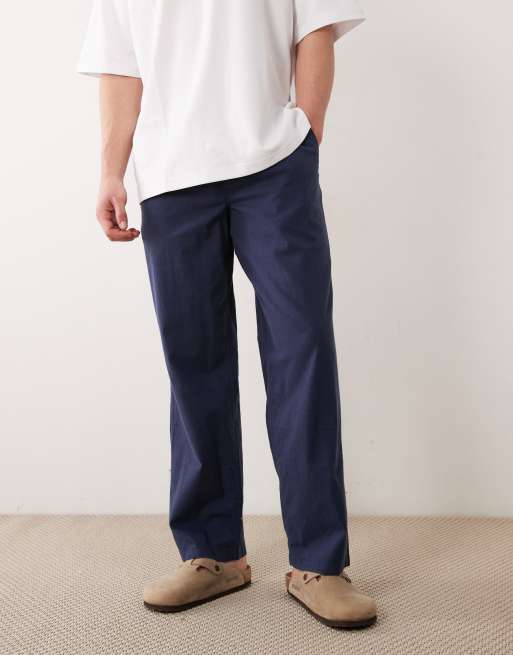 Jack & Jones loose linen mix drawstring trousers in navy