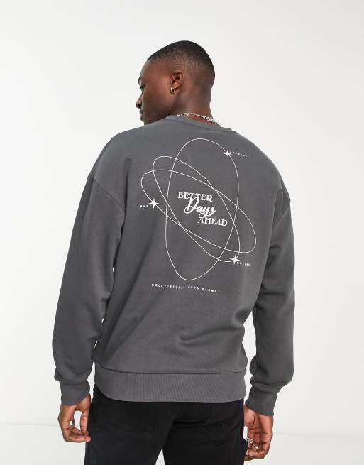 Jack & Jones Originals oversized sweat with better days back print in charcoal