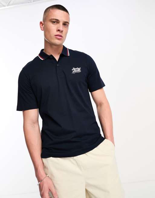 Jack & Jones Originals polo with tipping detail in navy
