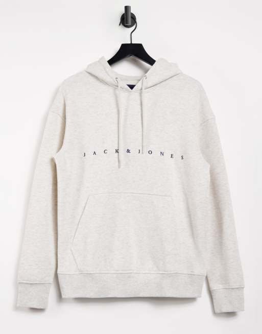 Jack & Jones Originals relaxed fit logo hoodie in off white