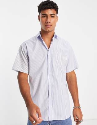 Jack & Jones Originals stripe mix print short sleeved shirt in blue