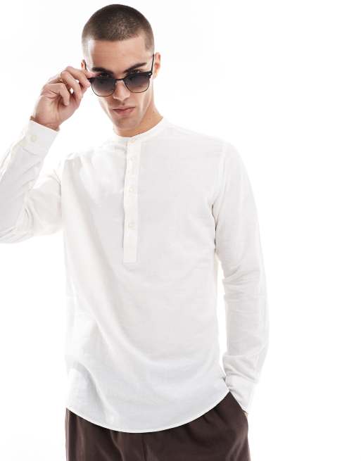 Jack & Jones overhead linen shirt in white