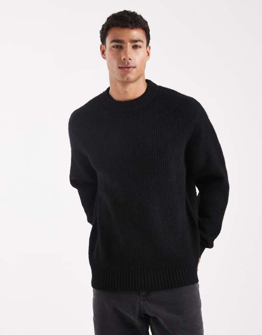 Jack & Jones oversize thick ribbed jumper in black