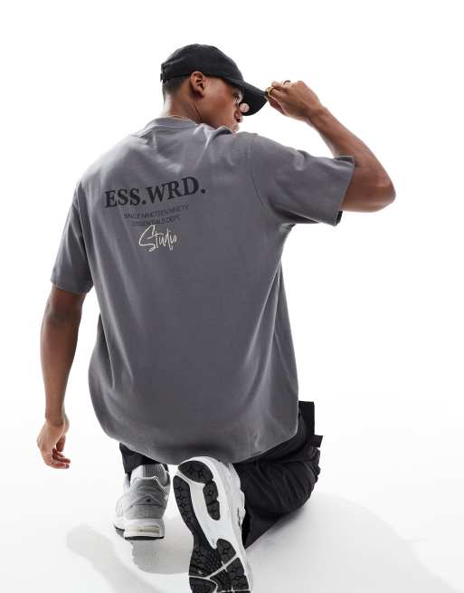 Jack & Jones oversized 200gsm heavyweight t-shirt with text back print in grey