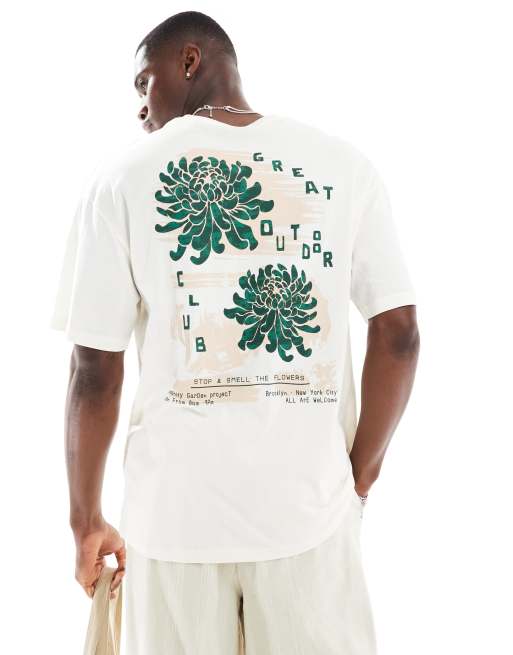 Jack & Jones oversized great outdoors back print t-shirt in light grey