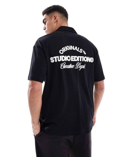 Jack & Jones oversized shirt with originals back print in black