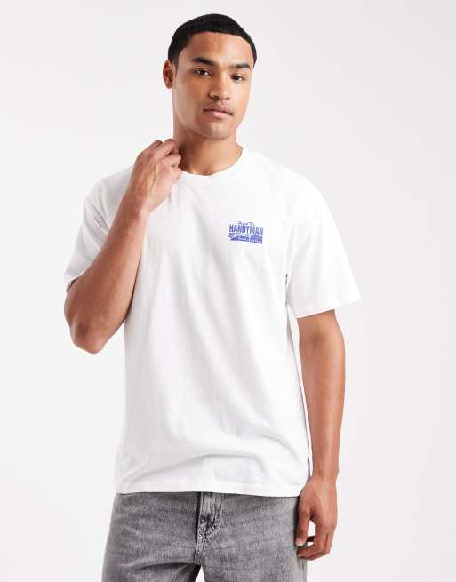 Jack & Jones oversized t-shirt with handyman print in white