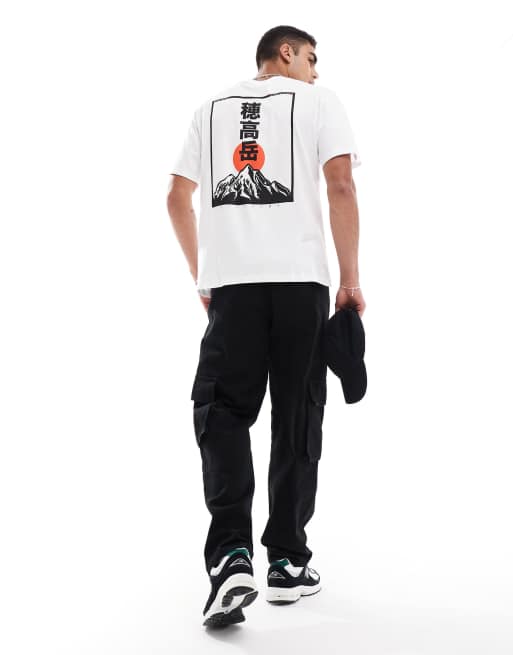 Jack & Jones oversized t-shirt with Japanese mountain backprint in white
