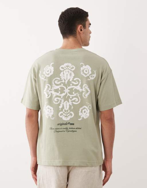 Jack & Jones oversized t-shirt with mosaic backprint in sage green