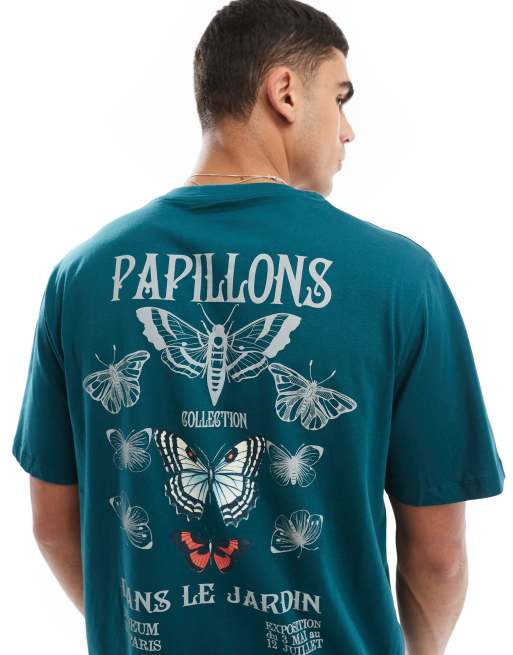 Jack & Jones oversized t-shirt with papillon back print in dark green