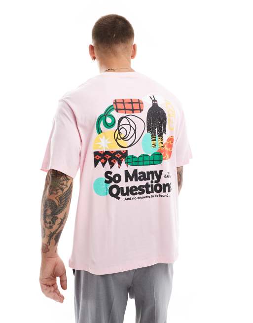 Jack & Jones oversized t-shirt with questions back print in pink