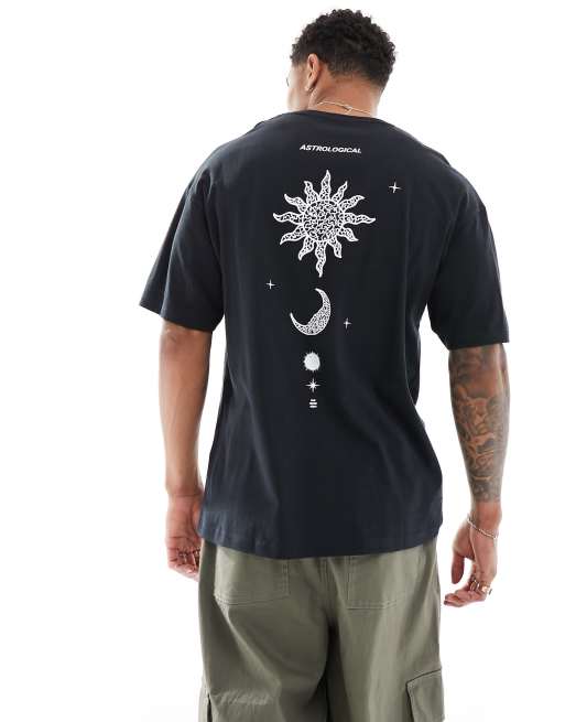 Jack & Jones oversized t-shirt with sun & moon back print in black