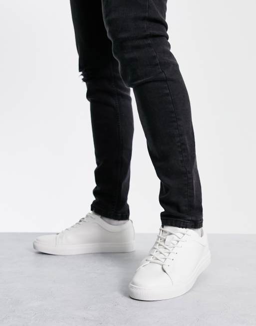 Jack & Jones Premium faux leather trainer in white