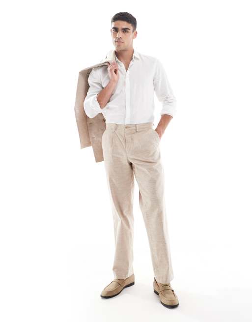 Jack & Jones Premium relaxed fit linen suit trouser in beige