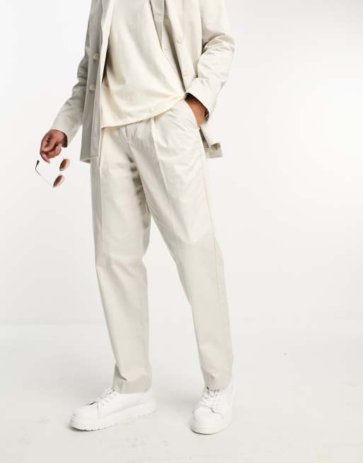 Jack & Jones Premium relaxed fit suit trousers in cream