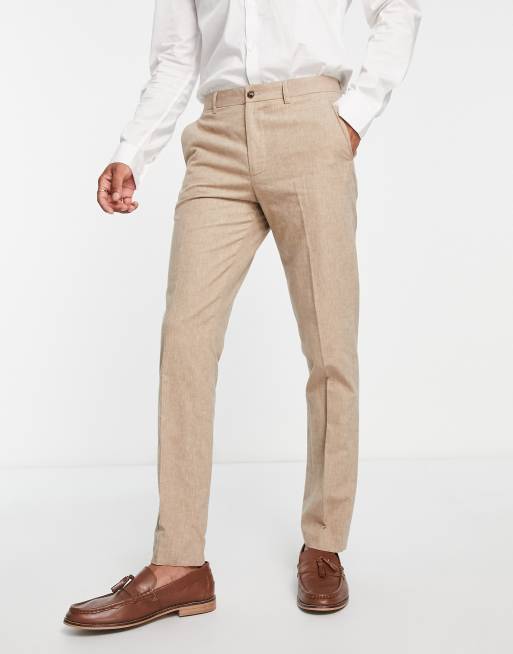Jack & Jones Premium slim fit suit trousers in beige linen mix