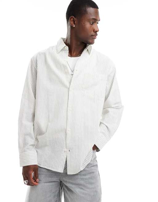 Jack & Jones super oversized striped linen long sleeve shirt in off white