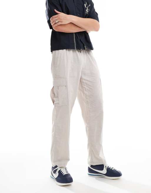 Jack & Jones tapered linen trouser with cargo pockets in beige
